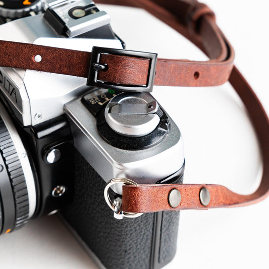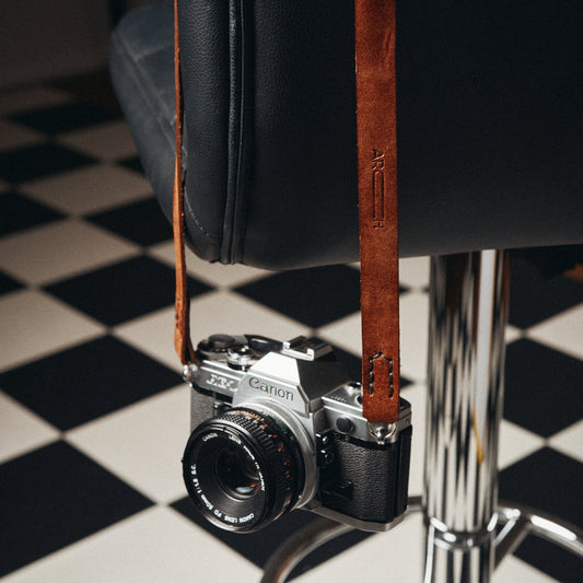 Looking for something light and minimal to carry your camera with? Check out the 001 Slim Leather Camera Strap